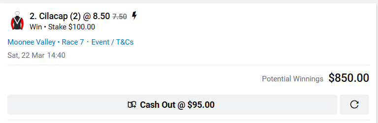 Week 1 - Moonee Valley - Race 7 - Number 2 - Cilacap ($8.50)