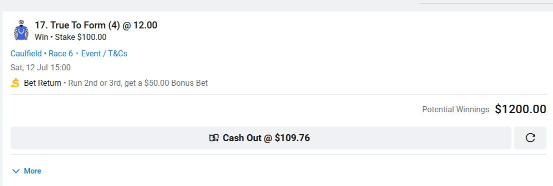 For my Week 17 bet, I’ve had $100 on True to Form @ $12