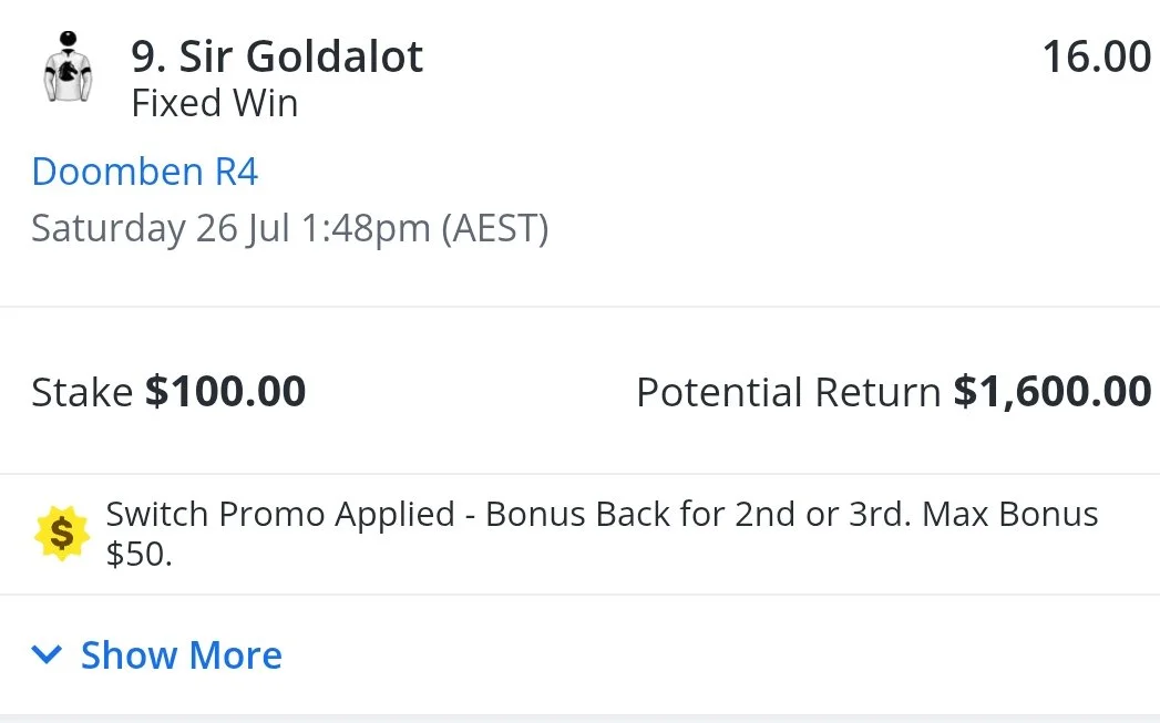 For my Week 19 bet, I’ve had $100 on Sir Goldalot @ $16