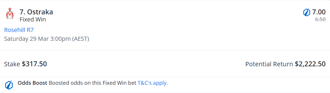 Week 2 - Rosehill - Race 7 - Number 7 - Ostraka ($7.00)