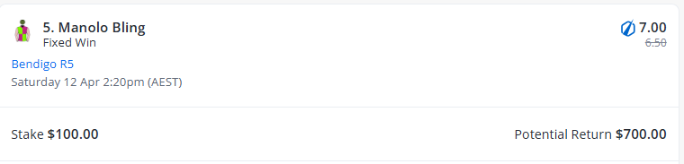 Week 4 - Bendigo - Race 5 - Number 5 - Manolo Bling ($7.00)