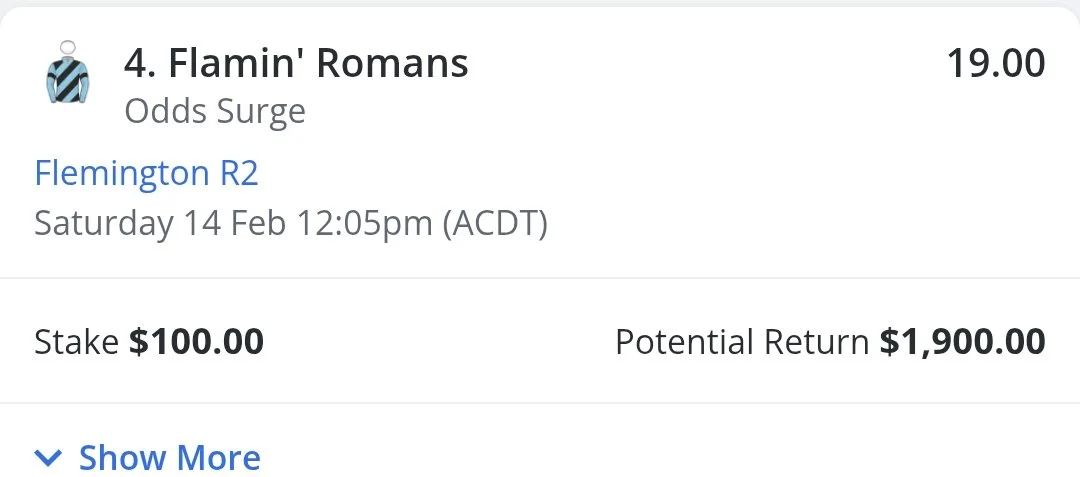 For my Week 48 bet, I’ve had $100 on Flamin Romans @ $19.