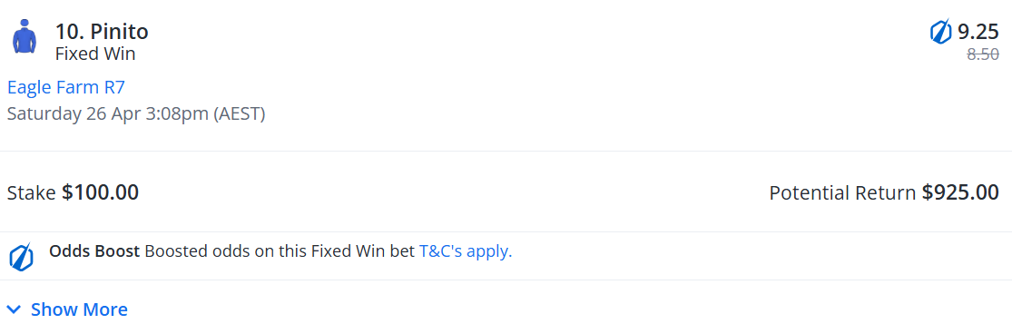 Week 6 - Eagle Farm - Race 7 - Number 10 - Pinito ($9.25)