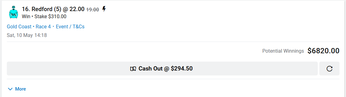 Week 8 - Gold Coast - Race 4 - Number 16 - Redford ($22)