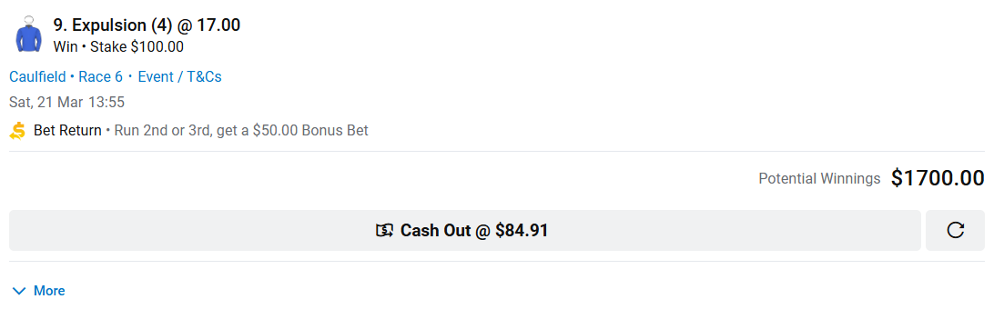 Caulfield - Race 6 - Number 9 - Expulsion @ $17